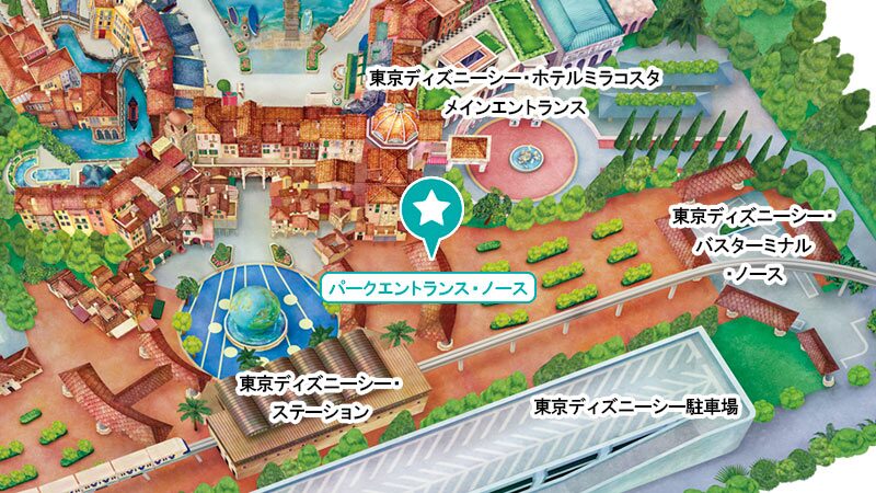 ミラコスタの近くにあり、専用の入口が設けられています。